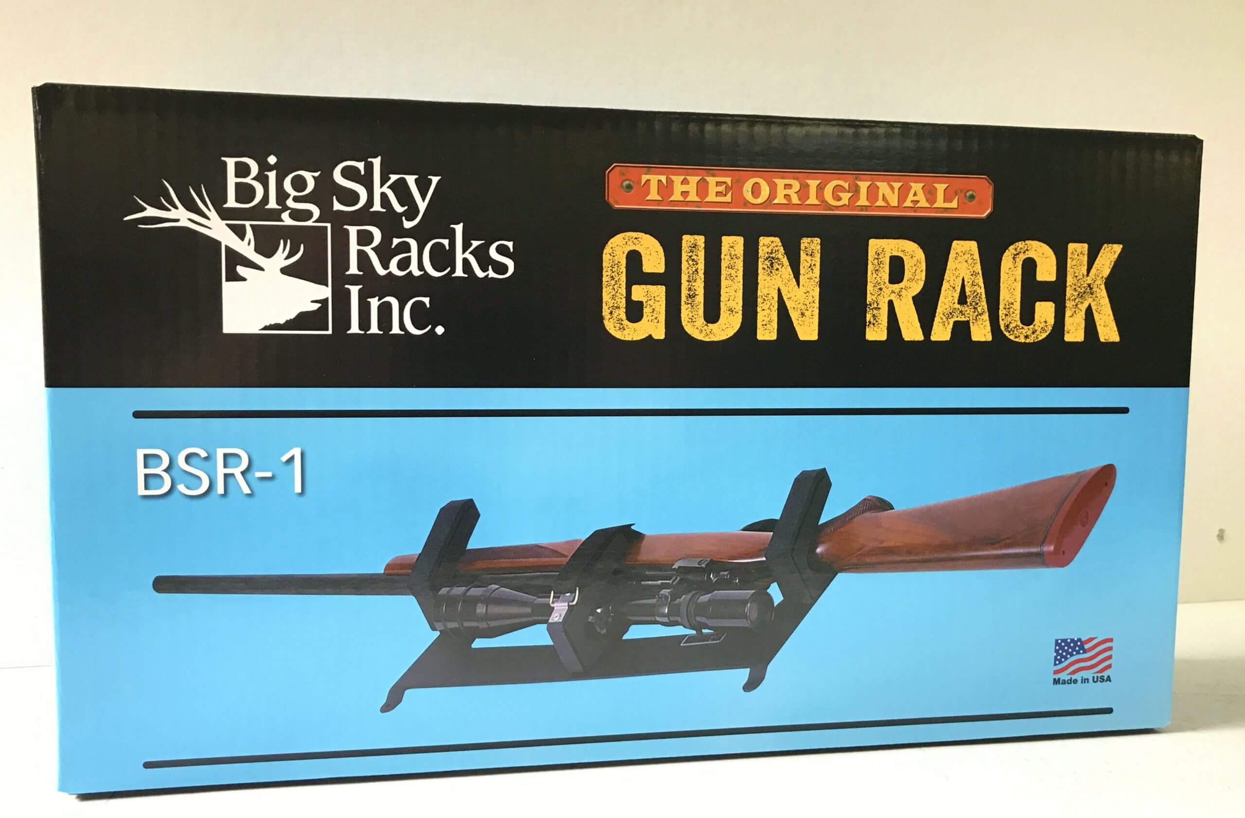 BSR – 1, our bread & butter retail product. This Big Sky Rack is designed for ease of use, stability, and longevity. It will keep your firearm secure, easy to access, and compact. For flat surface mounting applications, including older double roof pickup trucks, UTV canopy tops, golf cart tops, tractor cabs, pickup toppers and through the roof installation on newer pickups. This model also mounts well to any wall. In a home, in a shop, in motor homes, cabins, trunks, boats and in farm equipment. Ideal mounting hole dimensions are 16″ w. x 8 5/8″ h.